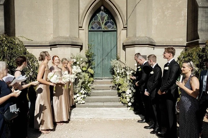 The stained glass windows punctuating the sides of the church change from peach to kingfisher blue, as the the sun moves across the sky. They are forever surprising us how they show up in photos, as an exquisite backdrop for your portraits. Throughout the year, our deciduous trees make for an ever changing landscape, moving from blossom to Autumnal hues. Surrounding pastures offer swaying golden grasses in the Summer months and a short stroll away you’ll find a heritage railway bridge that makes for a wonderfully dramatic backdrop. Wandering through Churchill’s two acres and beyond (with no need to drive or leave the property) also affords you a precious moment of stillness, in the midst of celebrations, to simply soak it all in together.
