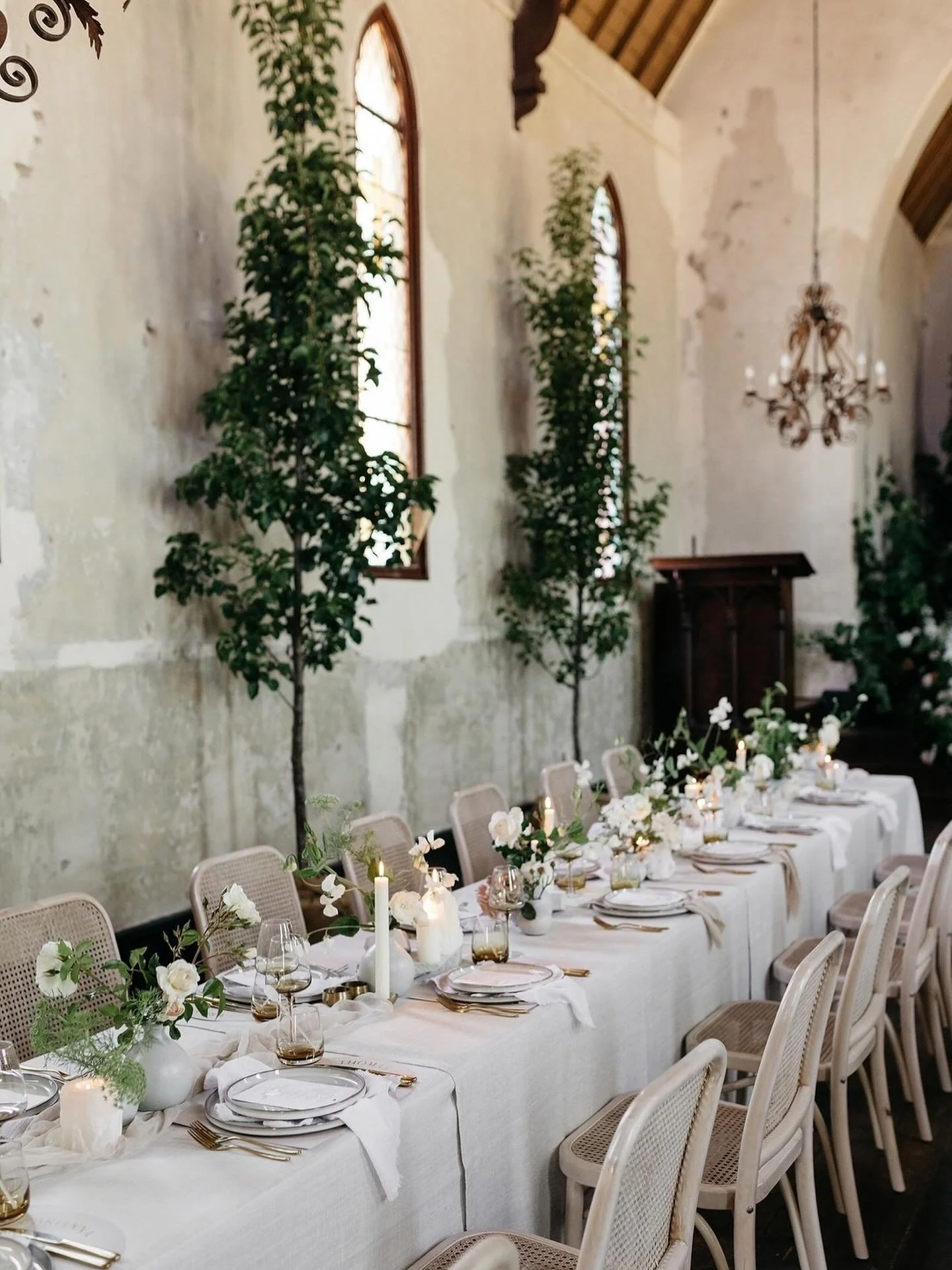 Have you always been quietly drawn to the majesty and reverential elegance of a church wedding, without necessarily wanting the ‘church’ part? You’ve come to the right place. The storied walls of our heritage church offer the most exquisite backdrop for your nuptials to take place (of any faith). Offering both a sense of intimacy and majestic drama, the modest footprint but magnificent sweeping ceilings create a unique atmosphere, that allows you to still feel connected to your guests, while remaining suitably centre-stage! If alfresco is more your vibe, the sandstone walls of the church exterior offer a divine symmetry beneath stained glass windows, for a lawn ceremony, which can effortlessly roll into aperitifs in the garden. For those in search of a cosier vibe, our white washed hall is a beautifully intimate option, whose walls amplify flower styling to gorgeous effect.