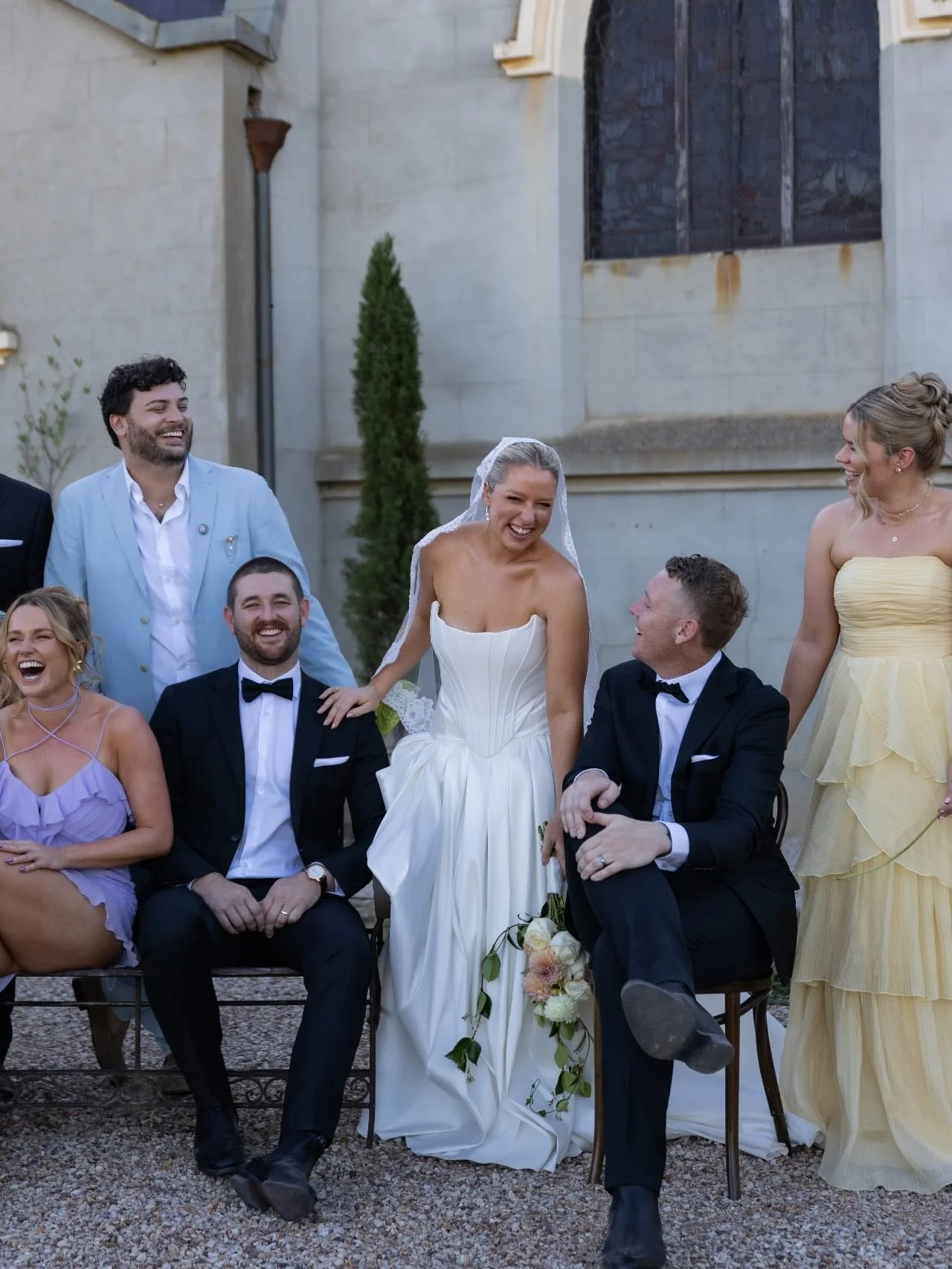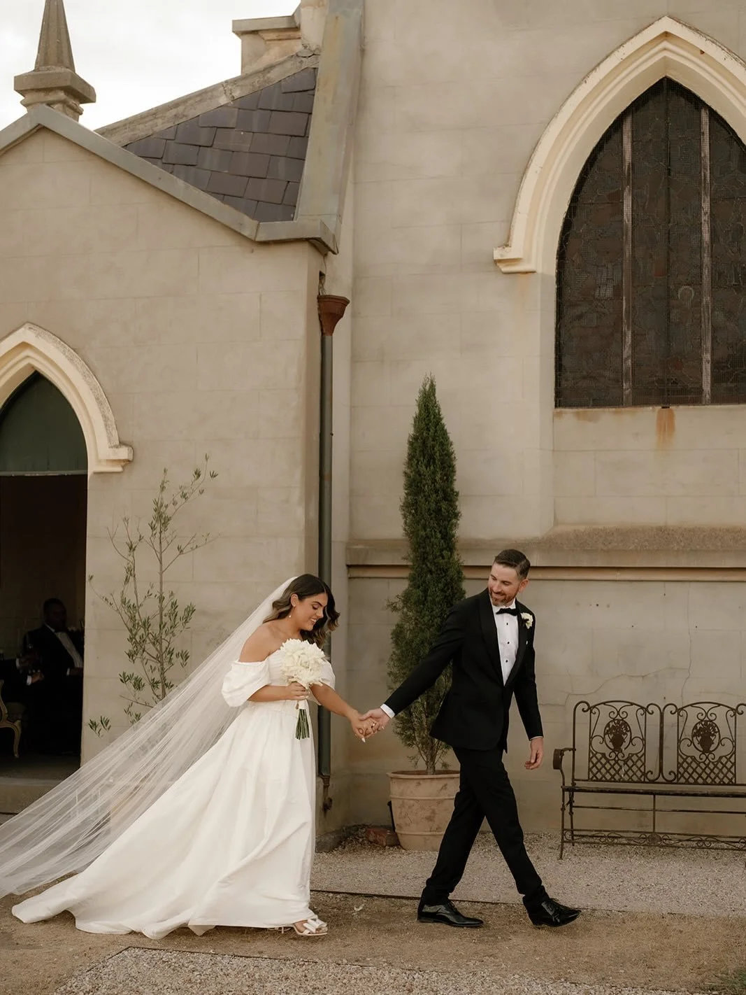 The stained glass windows punctuating the sides of the church change from peach to kingfisher blue, as the the sun moves across the sky. They are forever surprising us how they show up in photos, as an exquisite backdrop for your portraits. Throughout the year, our deciduous trees make for an ever changing landscape, moving from blossom to Autumnal hues. Surrounding pastures offer swaying golden grasses in the Summer months and a short stroll away youโll find a heritage railway bridge that makes for a wonderfully dramatic backdrop. Wandering through Churchillโs two acres and beyond (with no need to drive or leave the property) also affords you a precious moment of stillness, in the midst of celebrations, to simply soak it all in together.